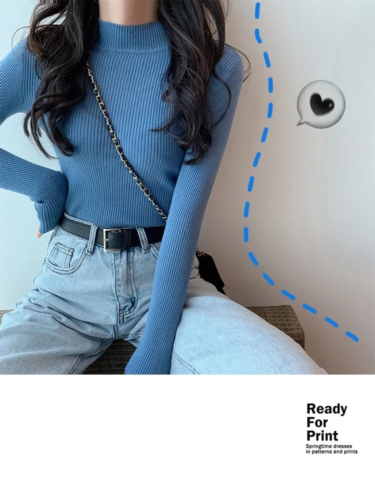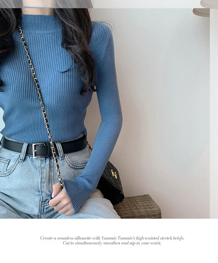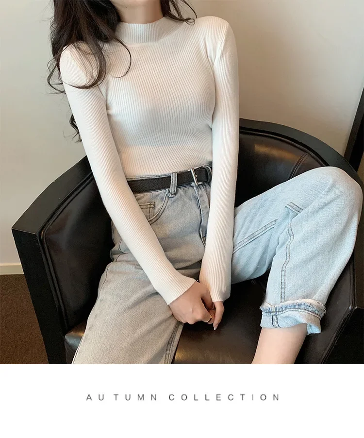Women’s Long Sleeve Knitwear Half High Collar Mid Neck Base Shirt Slim Fit Korean Style Inner Wear Autumn Winter Sweater